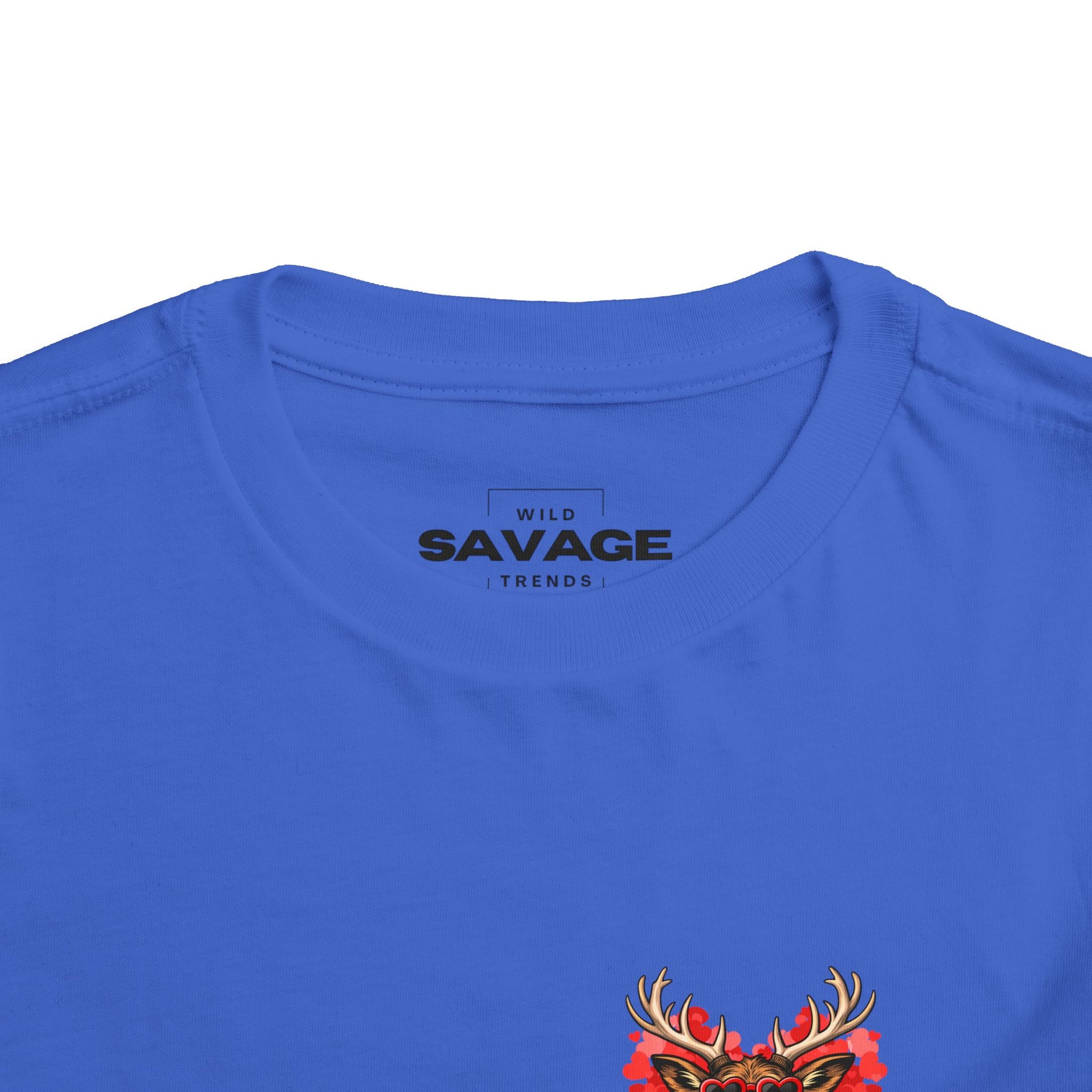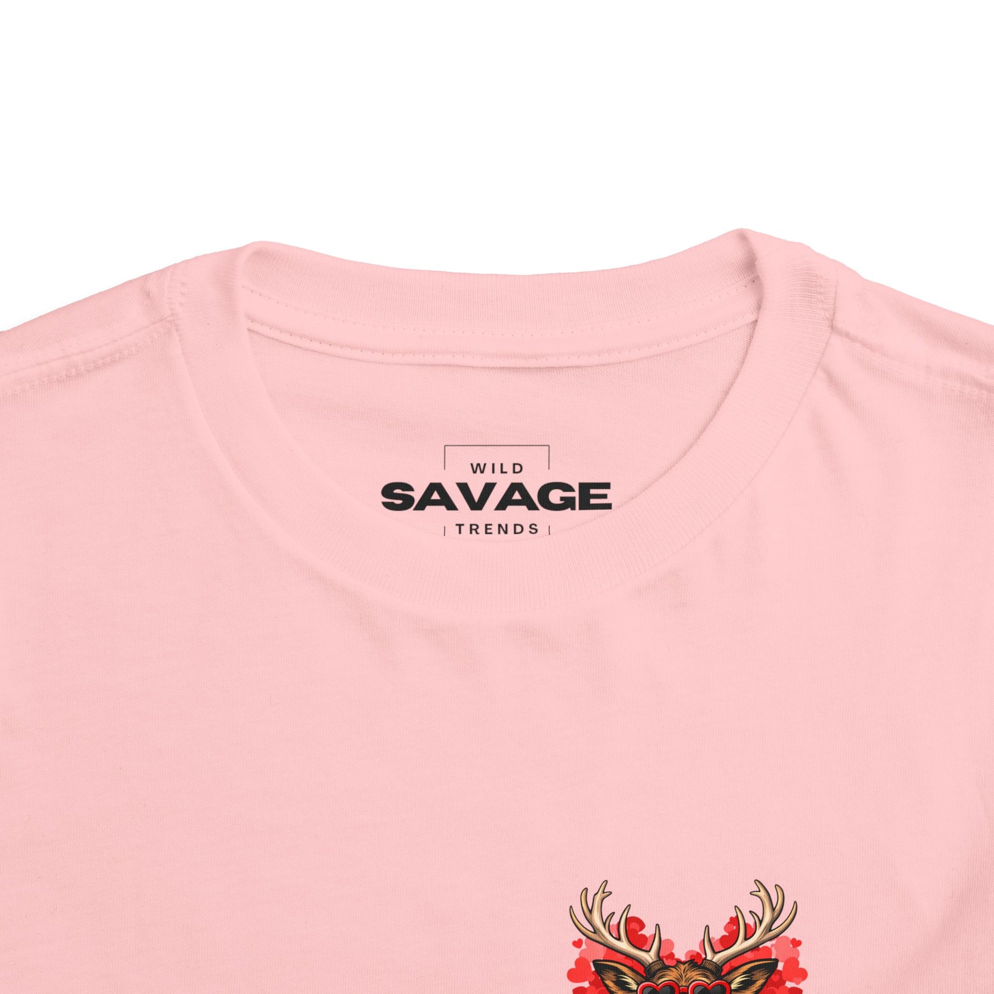 Tiny mischief and big heart — this toddler tee brings a playful, valentine-ready energy to little wardrobes. A smiling deer wears heart-shaped sunglasses and stands before a watercolor heart, its cheeky expression matched by hand-lettered wording below. The lightweight cotton feels gentle on sensitive skin while the centered prints on front and back add a whimsical surprise when the child turns around. Slip it on for days of playdates, family photo spots, or quiet afternoons at home where personality takes center stage.