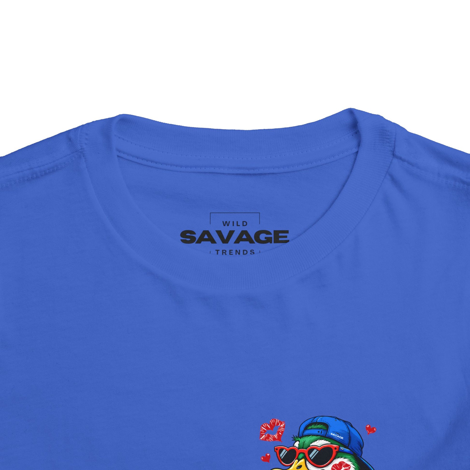 Bright, playful, and made for little personalities who love to be noticed. This toddler short sleeve tee features a cheeky, colorful duck wearing sunglasses and a backwards cap, surrounded by tiny hearts and playful lipstick prints. The lightweight cotton keeps active toddlers cool on park days and playdates, while the tear-away label ensures no scratchy seams against delicate skin. The design sits small on the chest or larger across the back depending on the cut—either way it brings bounce and attitude to everyday outfits. Throw it on with shorts or layer under a zip hoodie for afternoon adventures and family photos that capture genuine smiles.