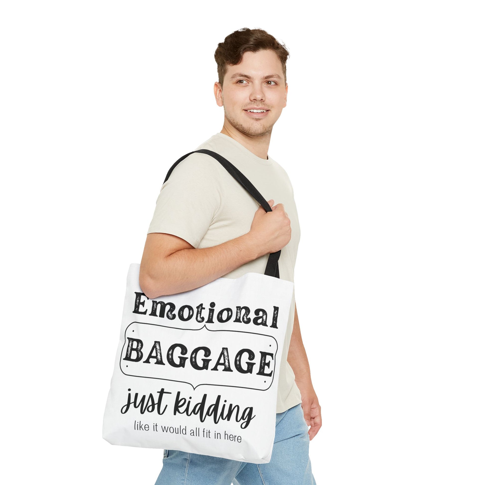 Introducing our stylish Tote Bag, designed for those who appreciate a mix of humor and practicality. This unique accessory embodies a light-hearted vibe, making it a perfect everyday companion for errands, beach days, or as a chic statement piece for casual outings. With its playful "Emotional Baggage" design, this tote resonates with anyone who enjoys a good laugh while remaining stylish. Its versatility makes it an excellent gift for friends and family on occasions such as birthdays, holidays, or just as a thoughtful surprise. Ideal for students, busy professionals, or anyone with a sense of fun, this tote will fit seamlessly into any lifestyle!