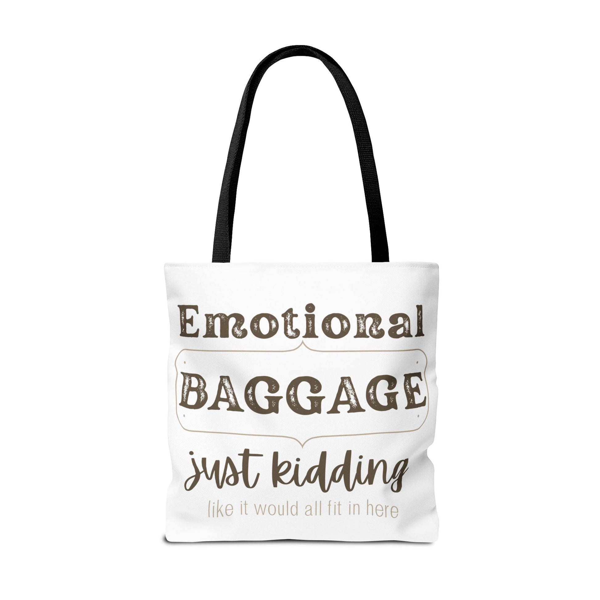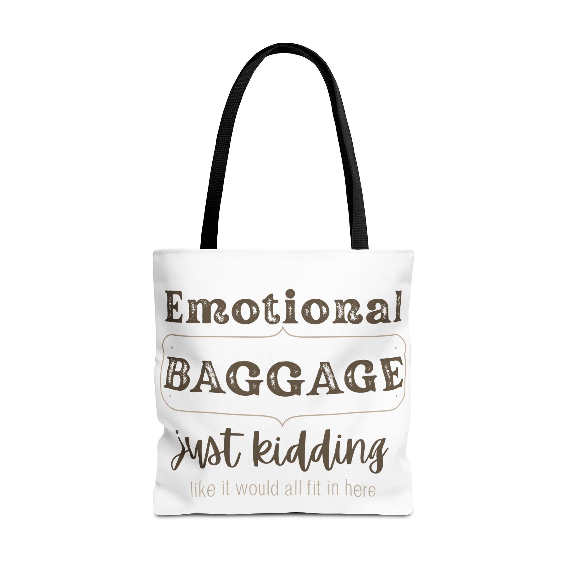 Add a touch of humor and practicality to your daily routine with this delightful tote bag. Perfect for carrying groceries, books, or beach essentials, it combines fun and functionality seamlessly. The playful phrase 'Emotional Baggage Just Kidding' adds a lighthearted vibe, making it a conversation starter wherever you go. Ideal for anyone who appreciates a good laugh and values unique accessories, this tote is great for college students, busy professionals, or anyone who enjoys life’s little quirks. Its stylish design makes it a fantastic gift for birthdays, holidays, or just because. Embrace your daily adventures with this charming tote, specially designed to brighten your day!