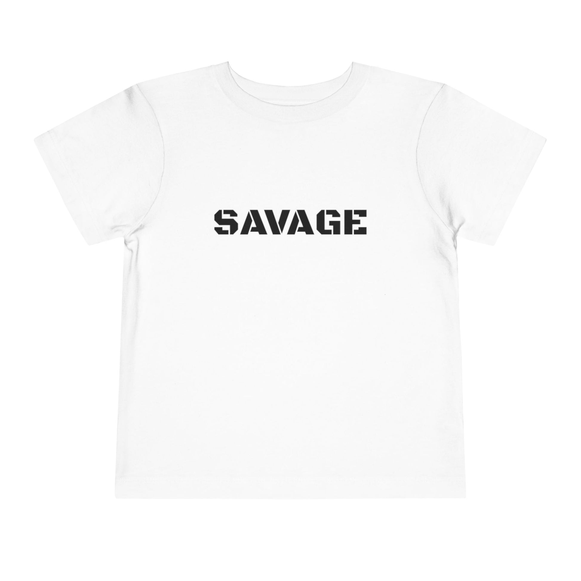 Little attitude, big personality. This toddler tee puts a playful, stencil-style "SAVAGE" front-and-center on a soft, lightweight cotton fabric that breathes and moves with busy kids. Simple lines and a clean white canvas keep the look bold but wearable—great for playground antics, family days out, or layering under a jacket. The build is gentle on sensitive skin with a tear-away label and side-seamed shape that holds up to washing and rough-and-tumble play. It reads like a wink from the child who insists on doing things their own way.